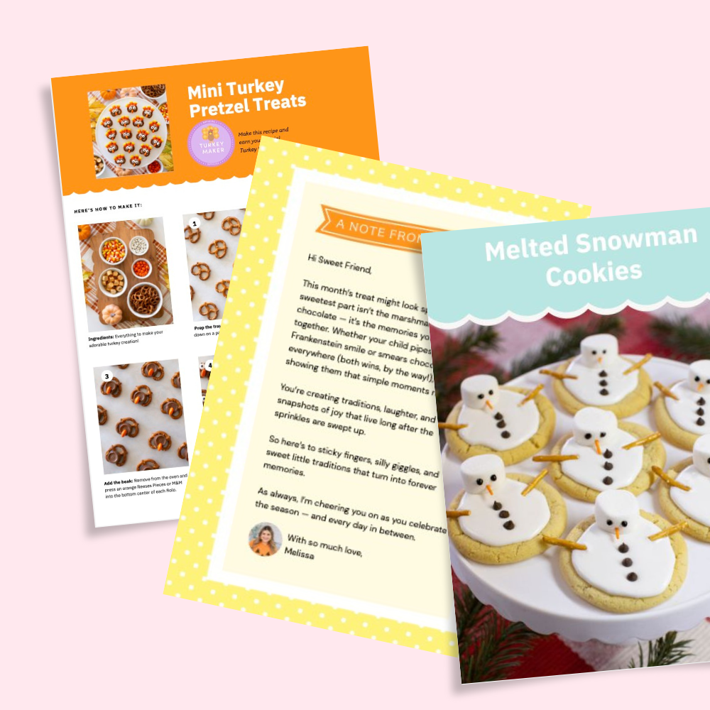 Monthly holiday magic for kids with one easy recipe, certificate, activity sheet, and more.